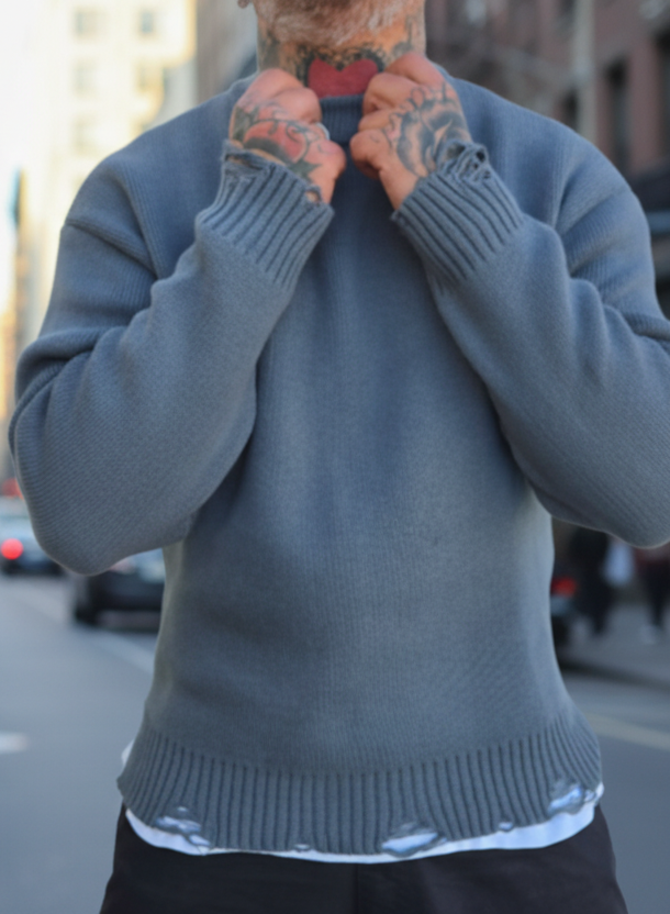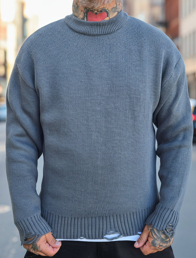 Maglione Girocollo Sfrangiato Grey