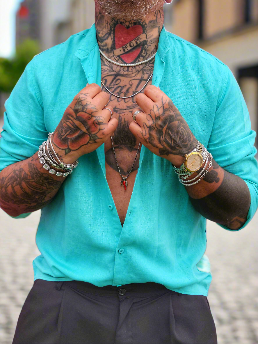 Camicia Lino Dubai Water Green