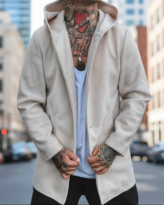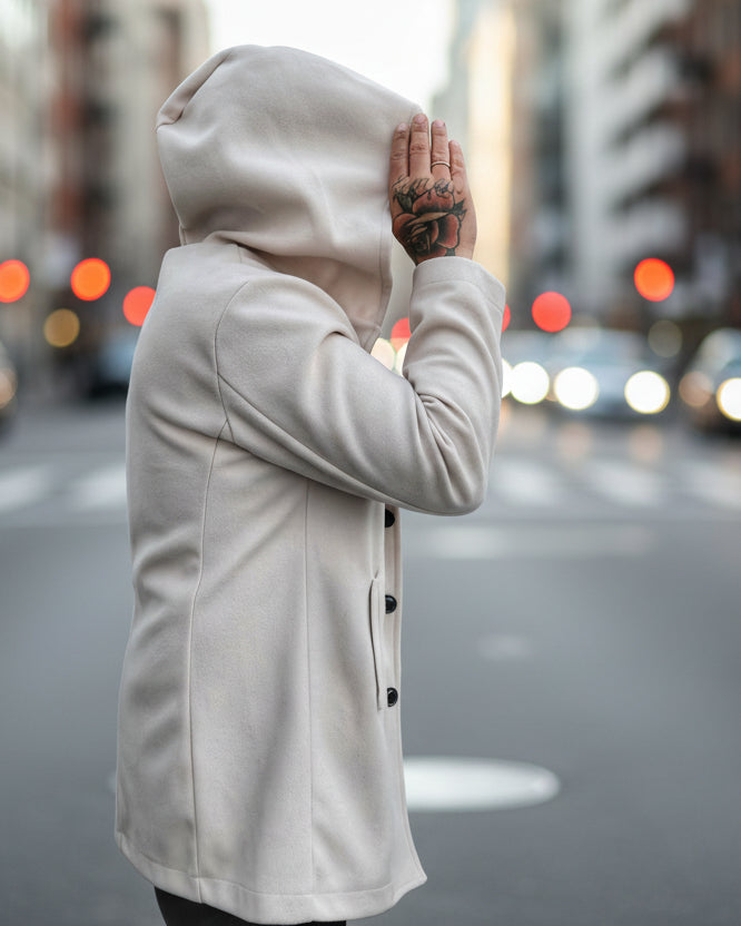 Cappotto dalla silhouette contemporanea che combina il taglio dritto con una vestibilità generosa e avvolgente. Dotato di cappuccio è Perfetto per chi ricerca uno stile moderno e sofisticato, capace di elevare qualsiasi outfit con un tocco di eleganza casual. Ideale per le stagioni intermedie, si abbina facilmente a capi basic o più strutturati.