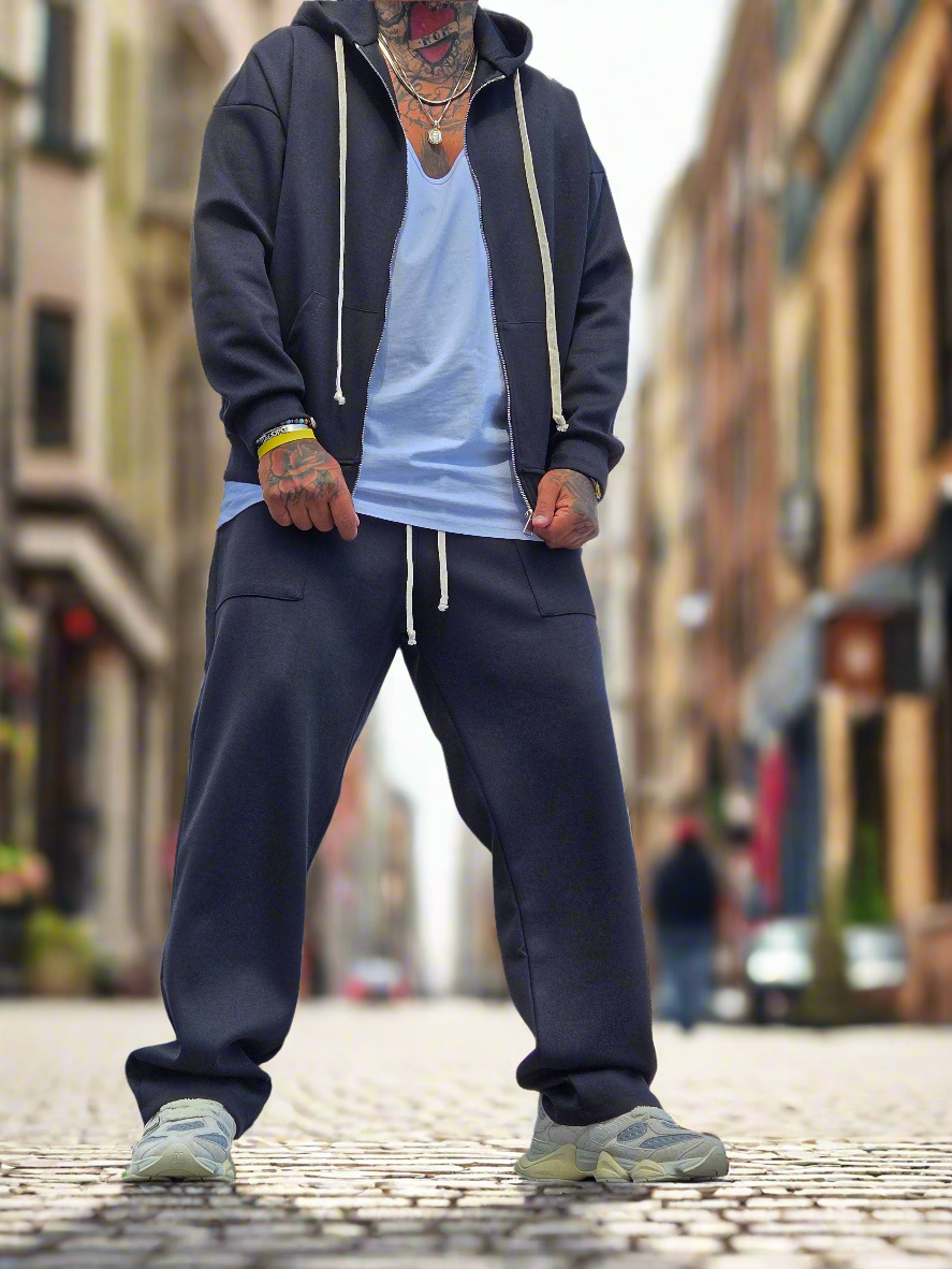 Questo coordinato è composto da una giacca con zip e cappuccio abbinata a dei pantaloni palazzo. Perfetto per un look casual e rilassato, è realizzato con tessuti di alta qualità che garantiranno comfort e resistenza. Aggiungi un tocco bohemian al tuo guardaroba con questo coordinato.