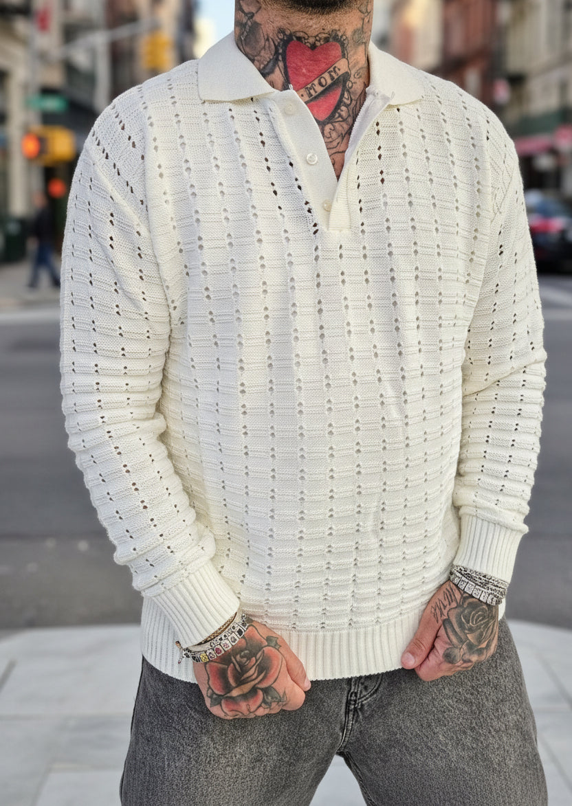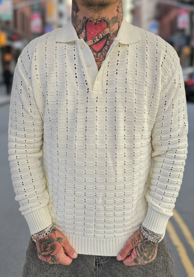 Polo Long Sleeve Traforata Cream